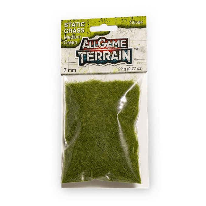 Use Medium Green Static Grass for lush fields or little tufts of grass on your miniature base, terrain feature or gaming mat. Medium Green is common in wet environments. Static Grass stands tall and delivers a natural look when applied with the Static Grass Shaker Kit.
