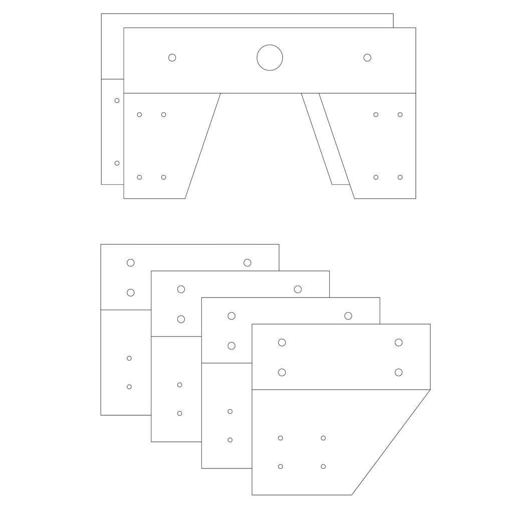 Designed to replace the spacers between the boards, and with additional bracing for the front and back faces, these brackets can be used to add legs of your choice to your baseboard.