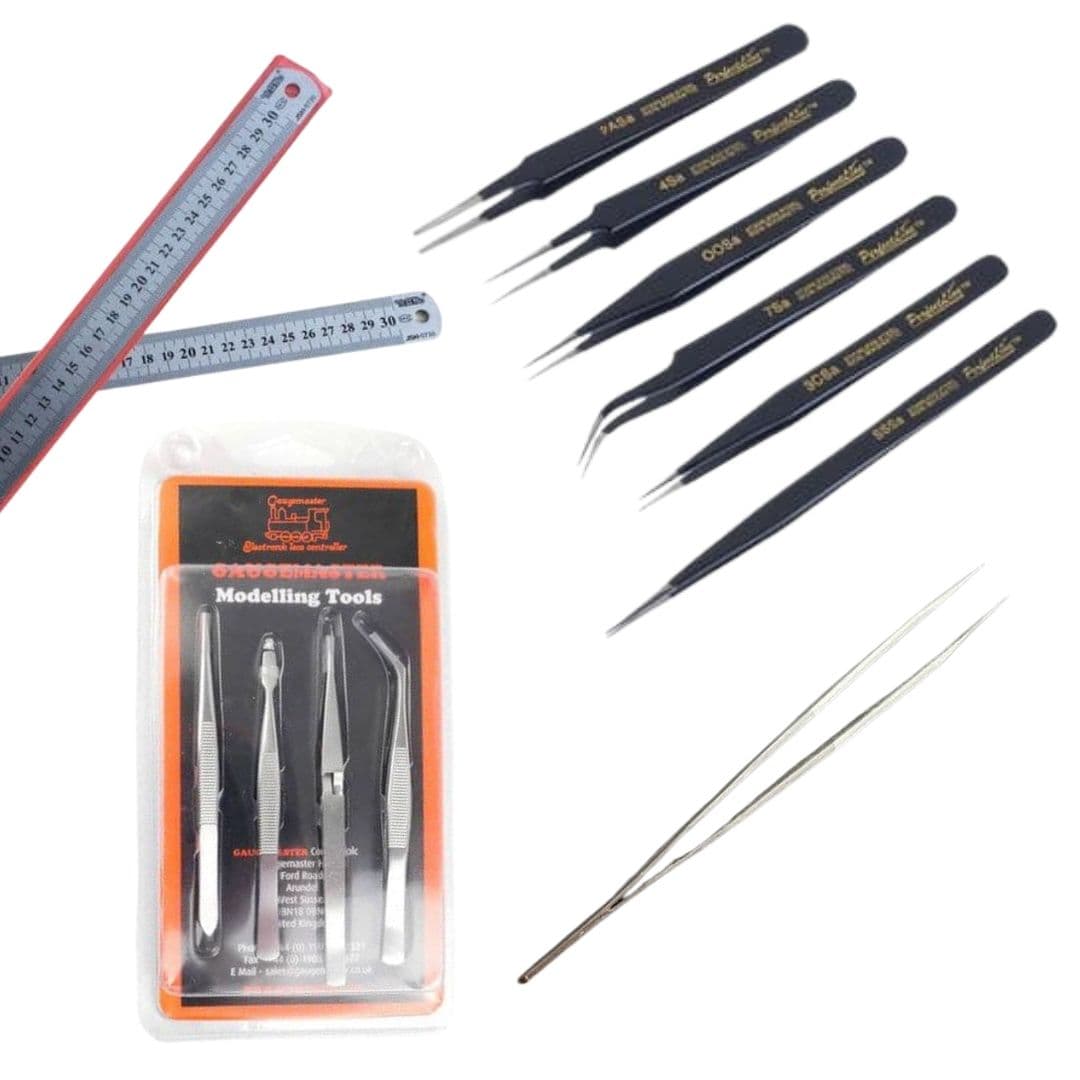 Tweezers: Ideal for handling tiny parts or fitting small parts into awkward corners and spaces! Tweezers come in all sorts of sizes and types, multipacks are the best for covering all sorts of modelling tasks. You can find a selection on our shop