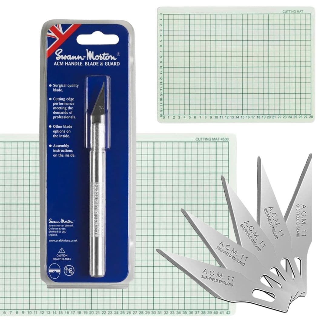 Craft knife: A good quality craft knife such as those made by Swann Morton will stand the test of time as well as reward you with many years of service. Craft knives come supplied with a blade pre-fitted and sometimes supplied with a pack of spare blades.