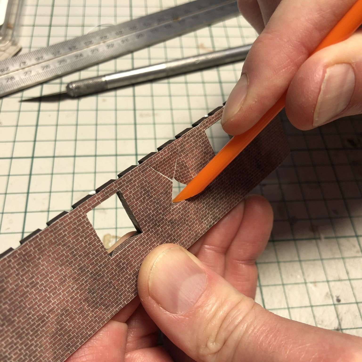 6B Pencil: Excellent for running along paper edges like brick paper wraps to conceal them. For marking out guidelines to aid cutting and scoring of the printed texture brick, stone sheets, etc., a 6B grade pencil is a good one to go for. The bonus of using a pencil is that any mistakes can be rubbed out and re-marked again in the correct position.