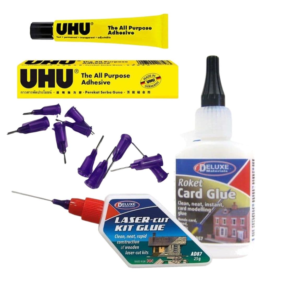 Deluxe Materials AD-57 Roket Card Glue: Without a doubt, our favourite glue of them all for assembling card model building kits. One bottle will build 100's of models, it's amazing stuff. For super-fast assembly of card models, with precision and no mess. Roket Card Glue will also bond balsa wood, paper card to most plastics too, making it an incredibly versatile glue for all your modelling applications. Shop here