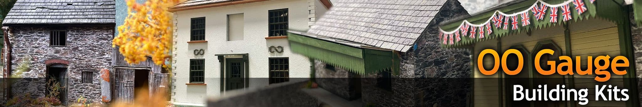 Bundle contents: KX088-OO Pearces Machine Shop, KX054-OO Tony's Cart Shed, KX087-OO Coach House & Stables, KX099-OO Dutch Barn & Gaugemaster GM1670