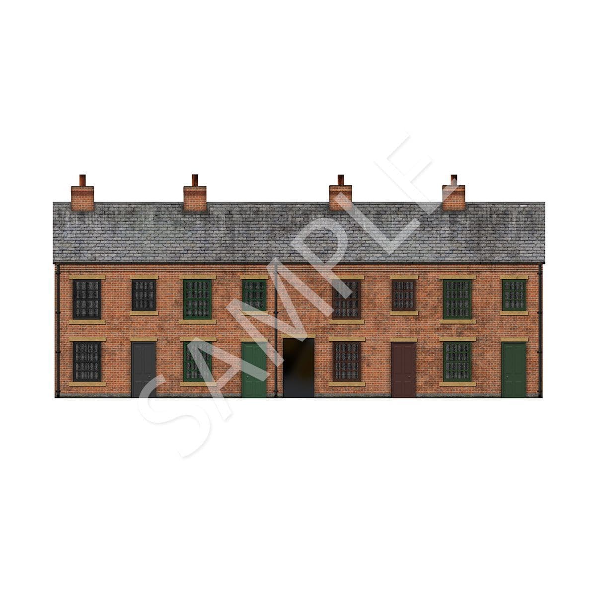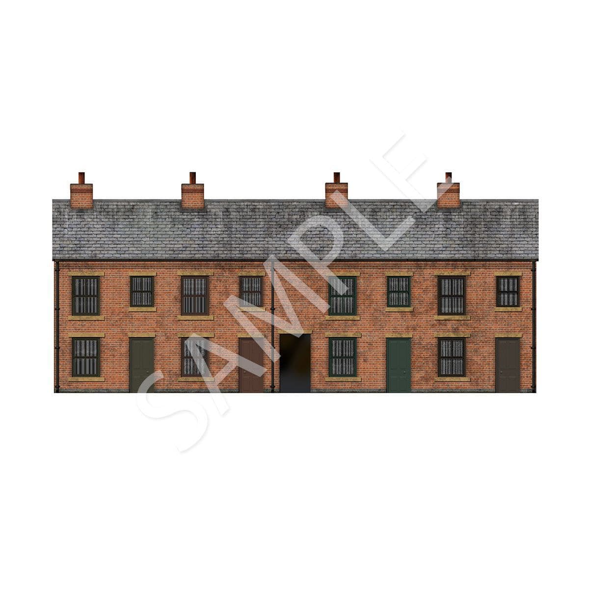 Create your own unique backscene with our range of easy to use, pre-printed backscene components for the OO/4mm scale railway modeller. This pack comprises of 4 pre-printed sheets each containing a row of four terraced houses with period windows & doors and lots of weathering for a realistically better finish. Simply cut out & glue into place along your backscene. Perfect for model railway layouts & diecast dioramas.