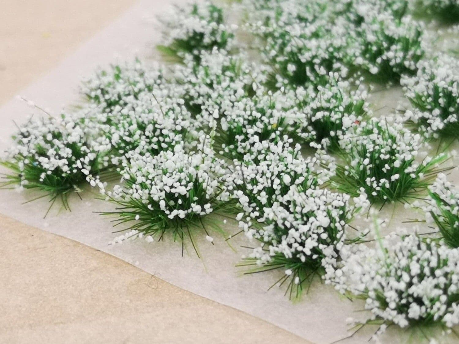 A handy pack of medium white flower tufts for bringing life to gardens & parks on your model railway layouts and dioramas.