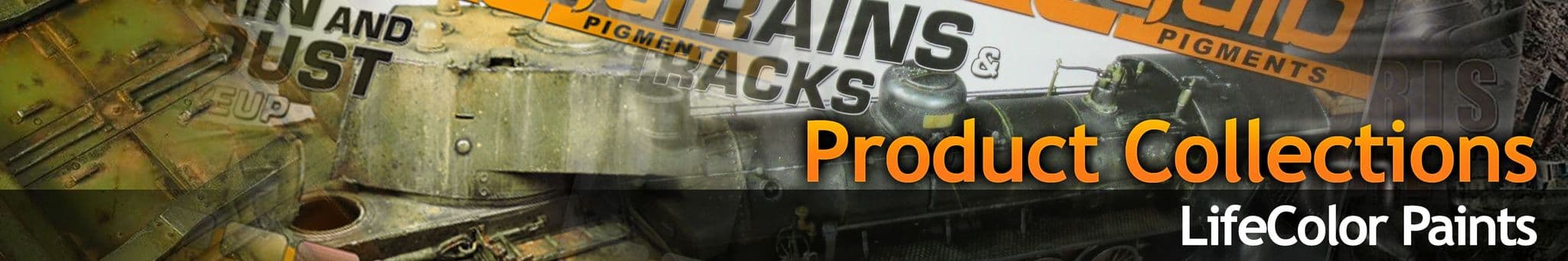 Without almost any exception, all the items we add to our model railway layouts, or diecast dioramas will need some form of paint applied. Base colours, quite often enamel, could be applied with a brush or airbrush, to colour a new kit or enhance a proprietary model. To add weathering or shading, until fairly recently this meant carefully dry-brushing or mixing/thinning paint. Whilst this was fine for single painting sessions, it was much harder to replicate the same shades for subsequent modelling. Nowadays, however, there are lots of paint shades, washes and pigments available to provide a supply of consistent quality and colour to enhance those model items. LifeColor paints are one of the best ranges of versatile airbrush and manual brush paints currently available. |
