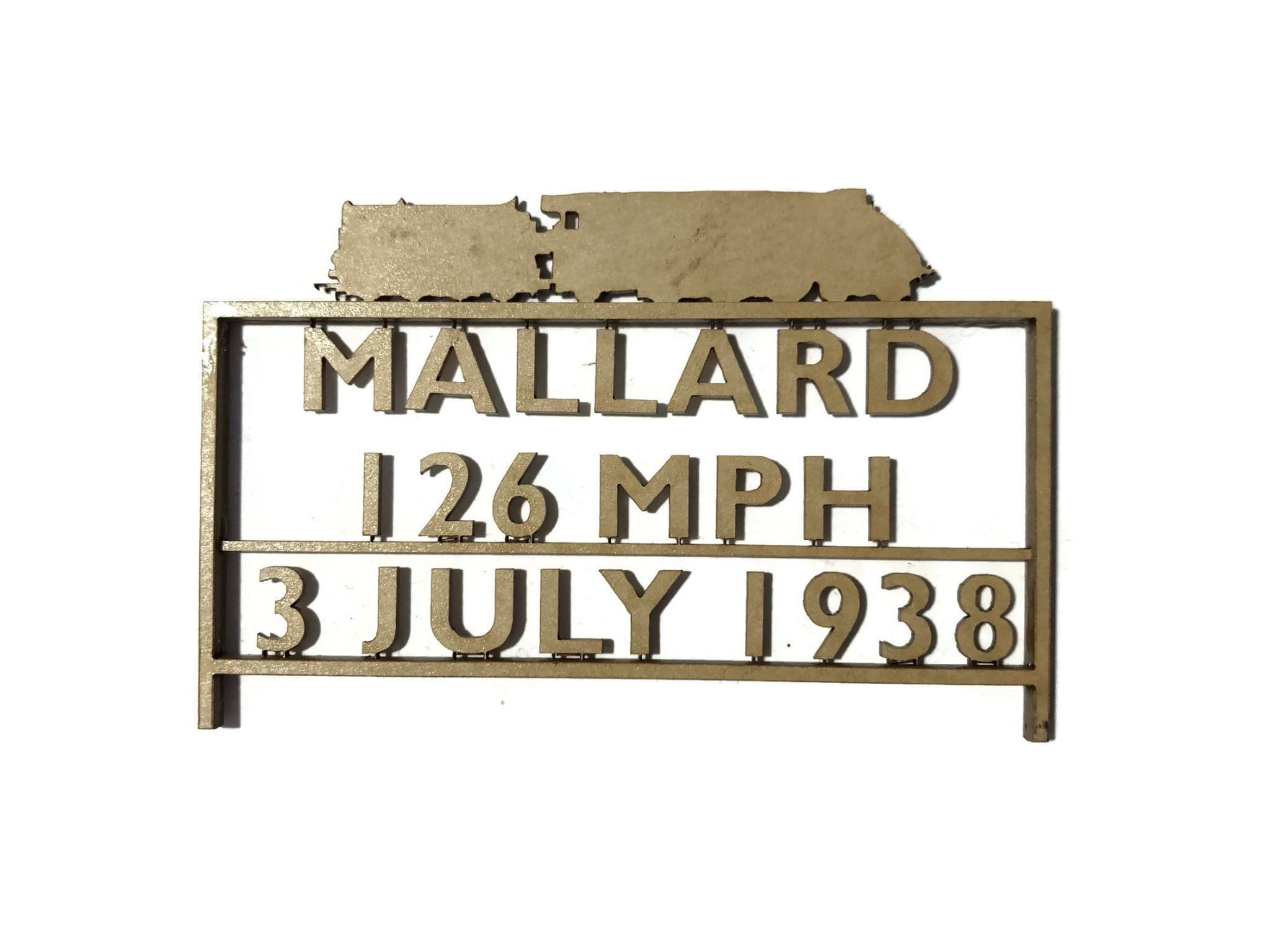 A TT:120 Scale replica of the Mallard Speed Record Commemorative sign.