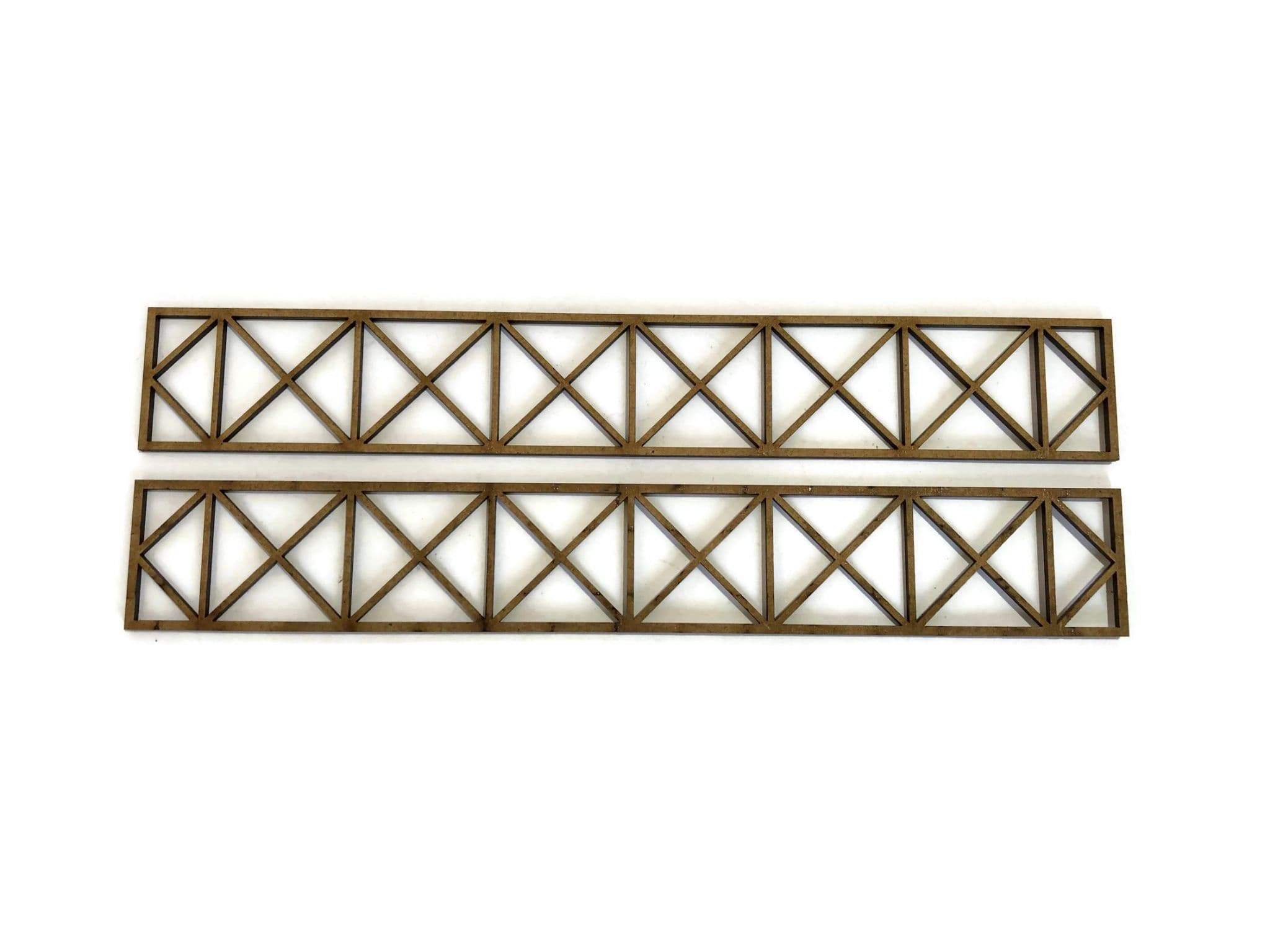A pack of 2 laser cut girders for use in scratch-building projects on your model railway layouts, military, aircraft & diecast dioramas. Made from 2mm MDF.