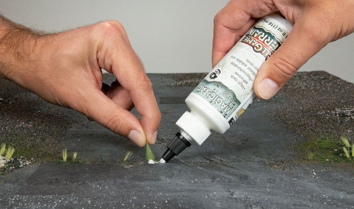 Magic-Tac™ is a high-tac adhesive. It is thick and full bodied, yet flexible. It is great for Tall Grass, Static Grass, and making custom tufts for your terrain feature, miniature base or gaming board. Magic-Tac is water soluble and non-toxic.