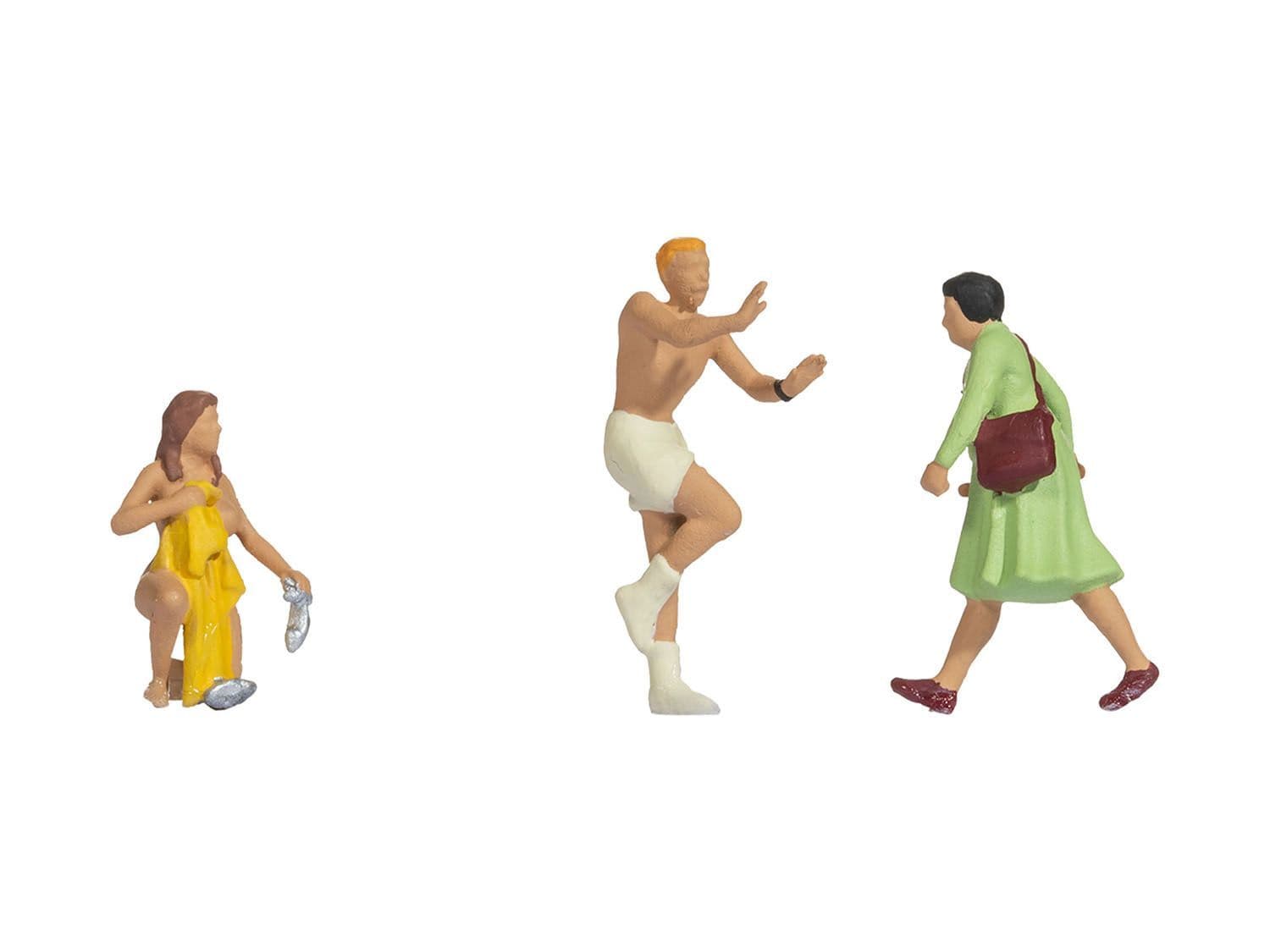Hand painted figure set featuring a naughty couple getting caught in public. Part of the Funny Scenes OO/HO scale range by Noch. Ideal for detailing model railway layouts and dioramas.