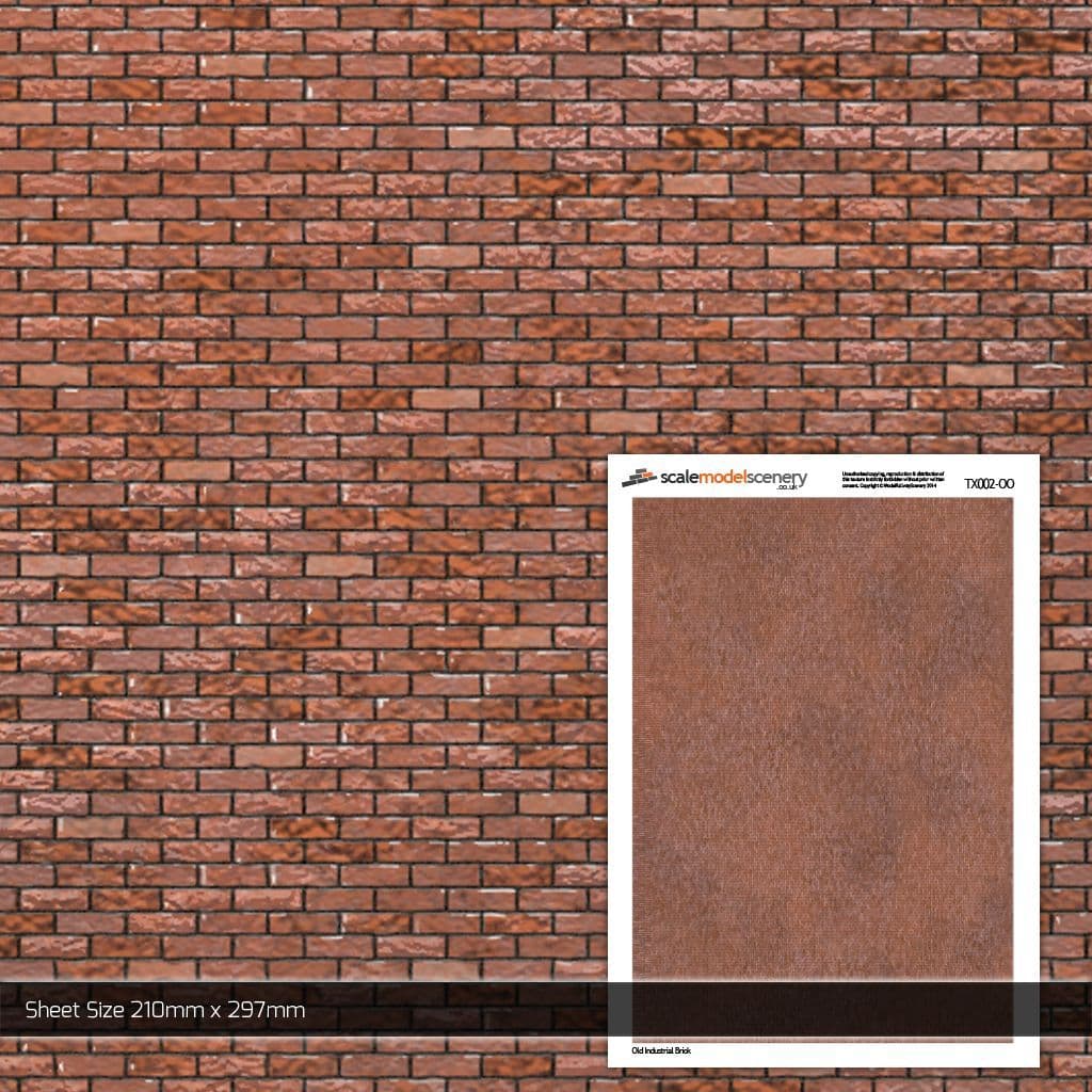 A pack of 5 A4 sheets (210mm x 297mm) of photo-realistic, Stretcher Bond Old Industrial Brick which is perfect for industrial buildings, chimneys and old, grotty sheds & garages. Ideal for use on scratch-building projects. Perfect for all OO scale model railway layouts and 1:76 diecast dioramas.