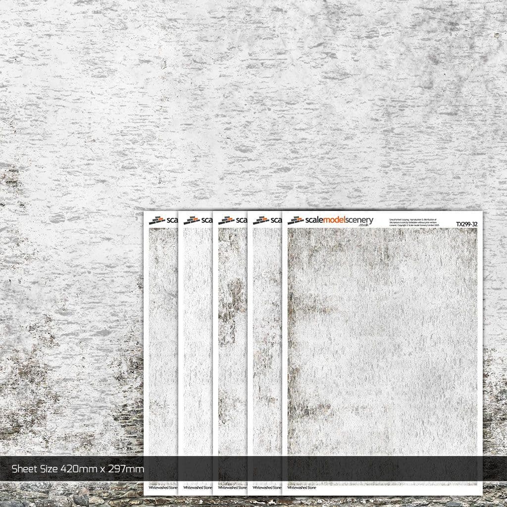 A pack of 5 A3 sheets (420mm x 297mm) of photo-realistic, Whitewashed Stone paper. Ideal for use when scratch-building industrial & farm buildings, workshop & garages, engine shed interiors etc. Can be cut to any size to suit your project. Perfect for all 1:32 scale model buildings for Scalextric layouts and Britains farm dioramas. Please note, these sheets are flat printed paper sheets and are not embossed.