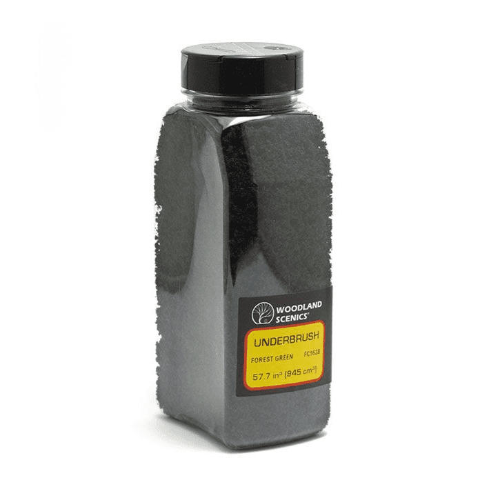 A generous bulk shaker tub of Forest Green Underbrush for modelling trees and bushes on your model railway layouts, model scenery & dioramas. Ideal for use with Woodland Scenics Tree Armatures
